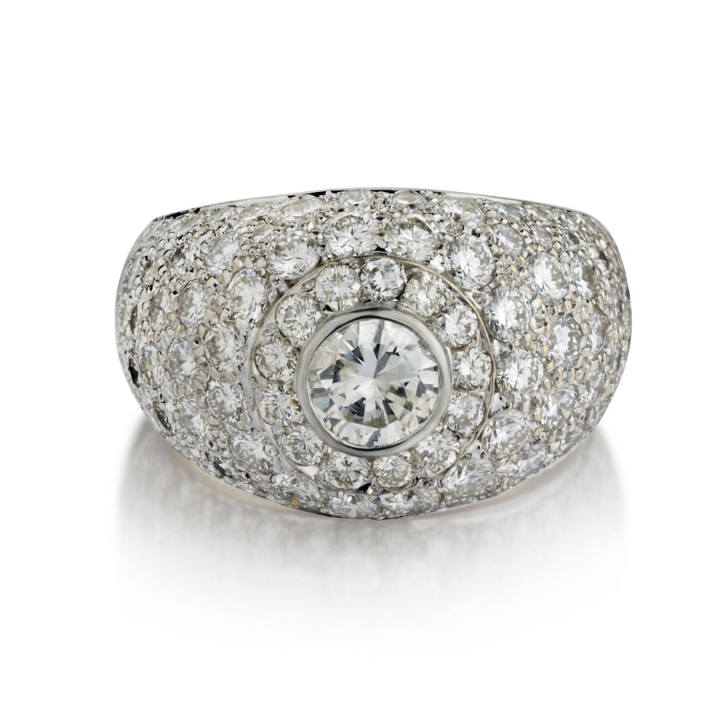 • 4.20 Carat Total Weight Round Brilliant Cut Diamond Domed Pave Ring
