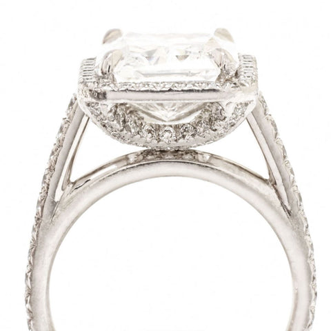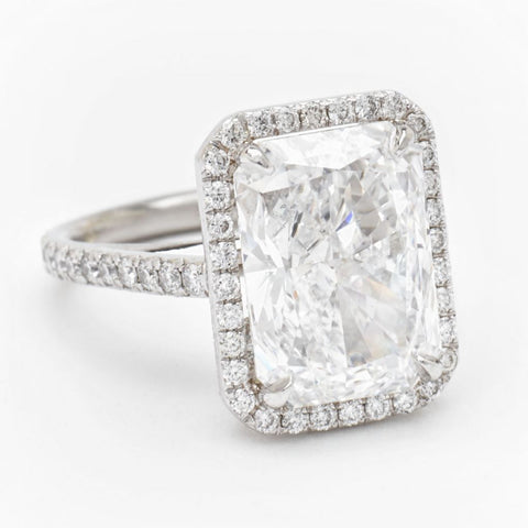 5.10 Carat Radiant Cut Diamond Platinum Halo Set Ring