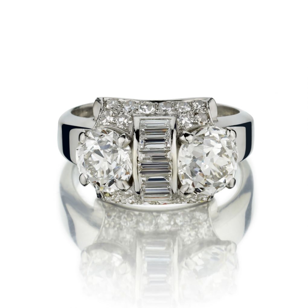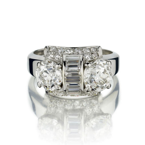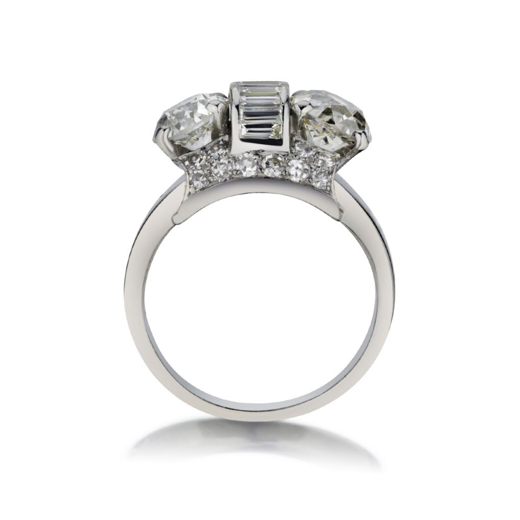 Art Deco 3.30 Carat Total Weight Old-European And Baguette Cut Diamond Ring
