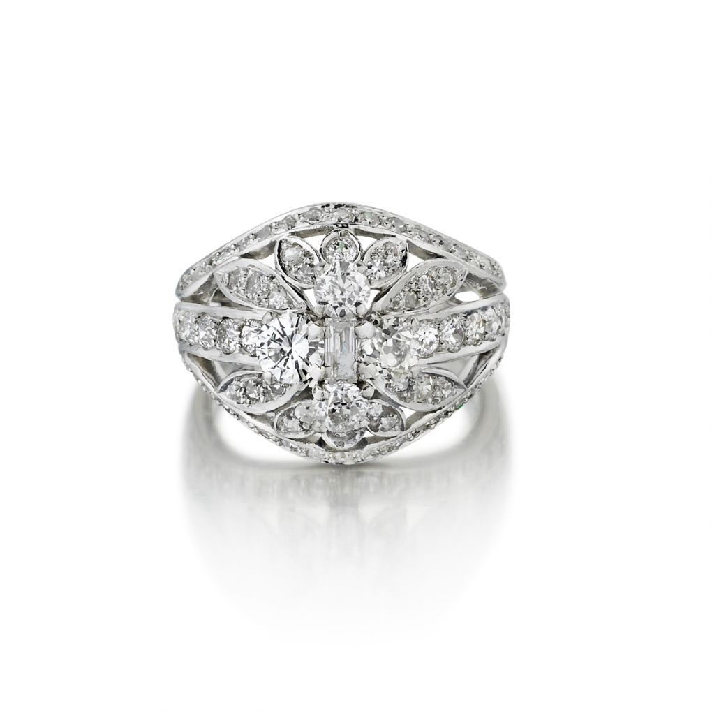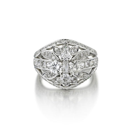 • Birks Floral 1.50CTW Old-Mine And European Cut Diamond Dome Ring