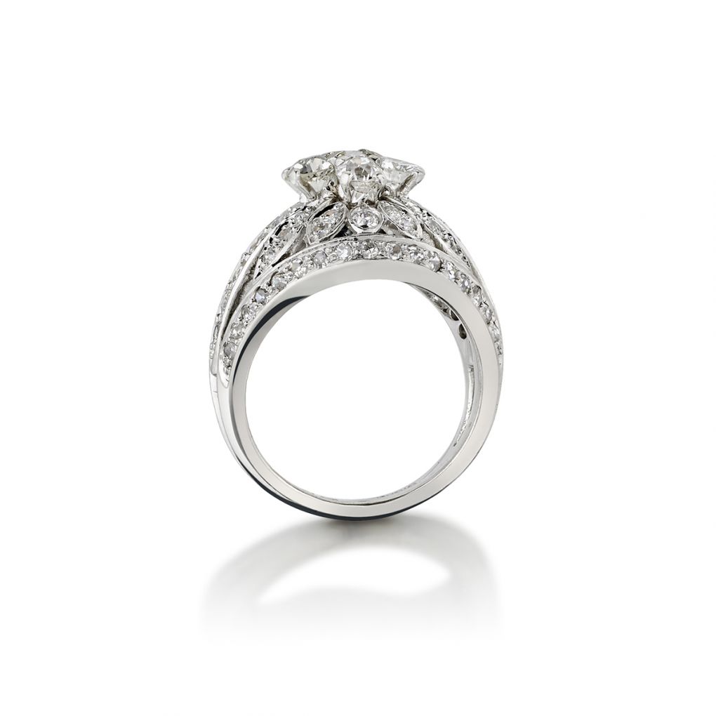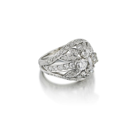 Birks Floral 1.50CTW Old-Mine And European Cut Diamond Dome Ring