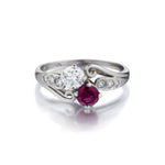 "Birks" Ladies Ruby and Diamond Vintage Ring. Circa 1940's.
