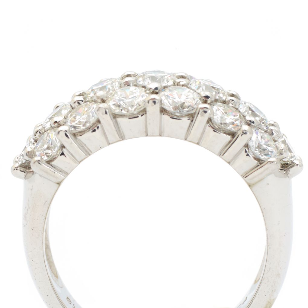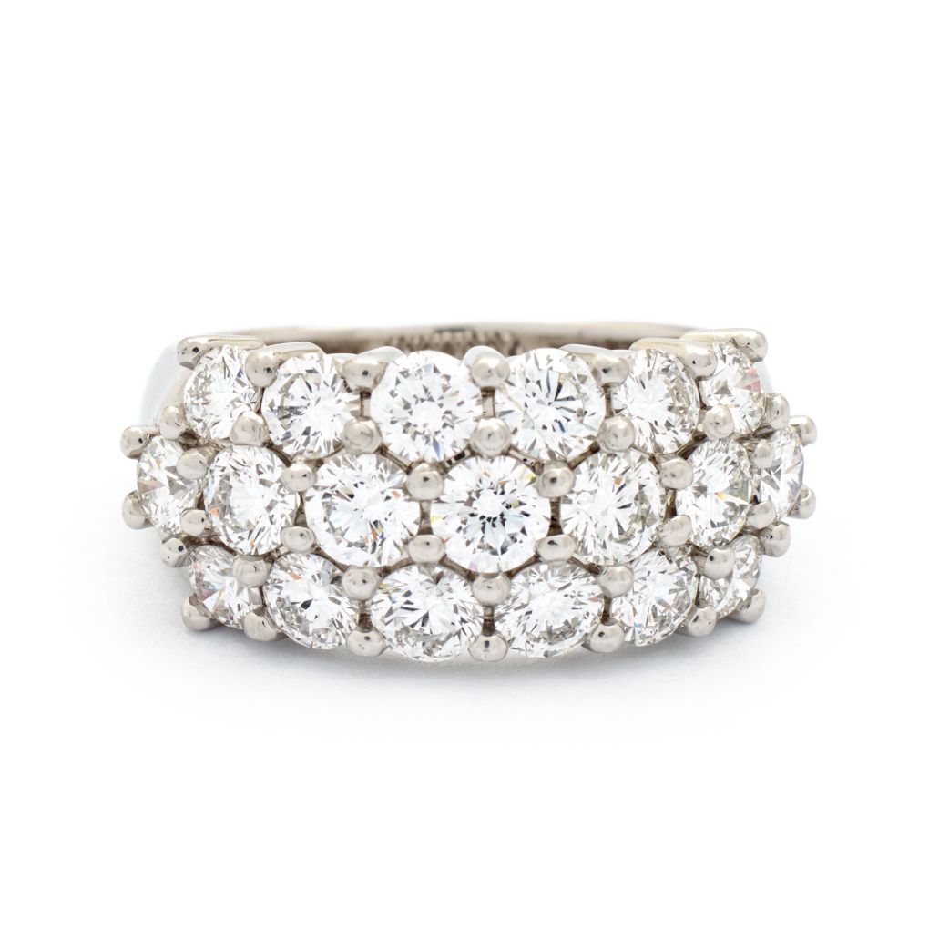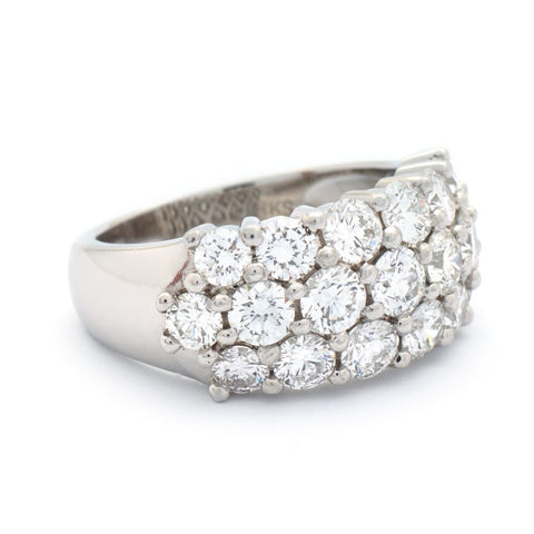 Ladies platinum Birks three-row diamond anniversary band featuring (19) round brilliant cut diamonds weighing approximately 3.50 carats total weight of (VS) in clarity and (F) in color.