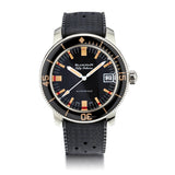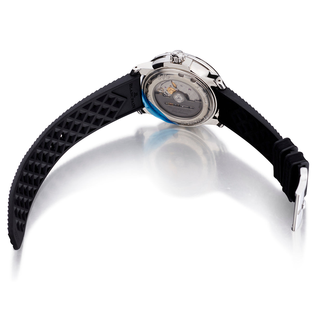 Blancpain Fifty Fathoms "Barakuda" in steel. Black rubber band with steel tang. Case size: 40.3mm x 13.2mm (thick). Black dial. Black ceramic bezel insert. Date.Automatic movement. Calibre: 1151. Sapphire crystal. See through sapphire back. Water resistant: 30 ATM. Limited edition to 500 pieces. Reference: 5008B 1130 B52A