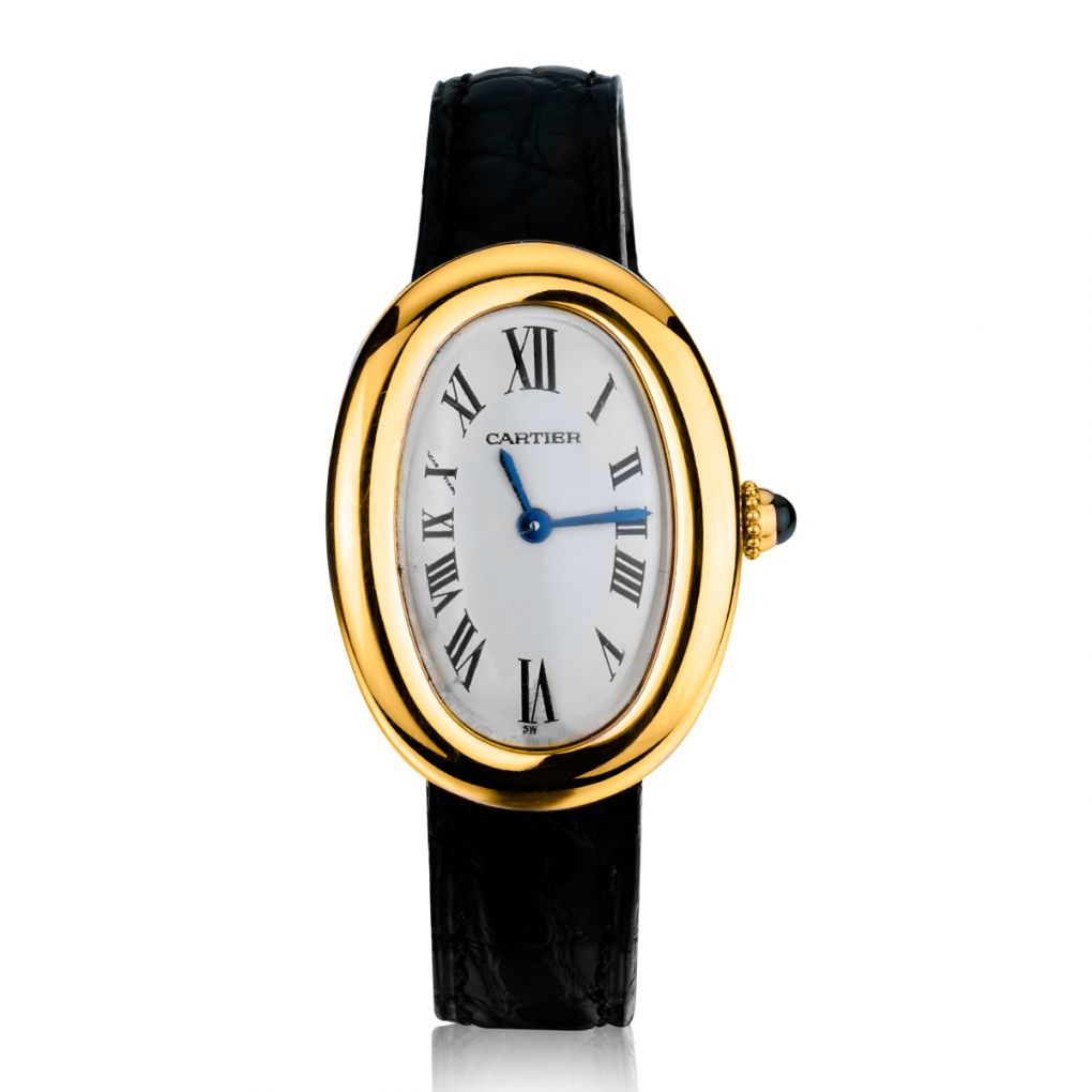 • Cartier Ladies 18kt W/G Baignoire with Diamonds. Ref: WB520006