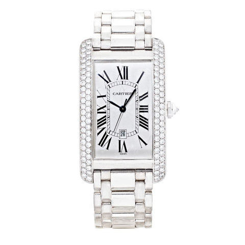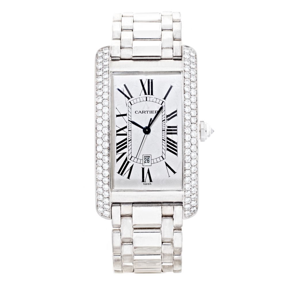 • Cartier Tank Americaine 18 Karat White Gold & Diamond Watch