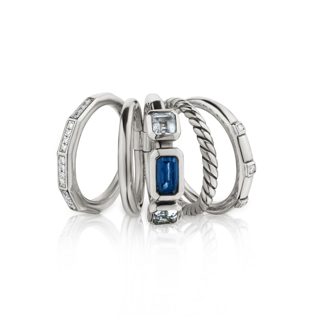 • David Yurman Five Row Stackable Ring with Hampton Blue Topaz and Diamonds