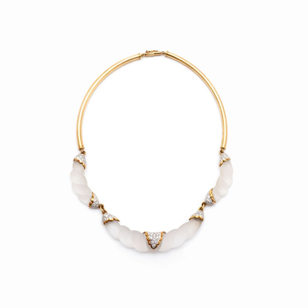 • Frosted Camphor Glass & Diamond Yellow Gold Necklace