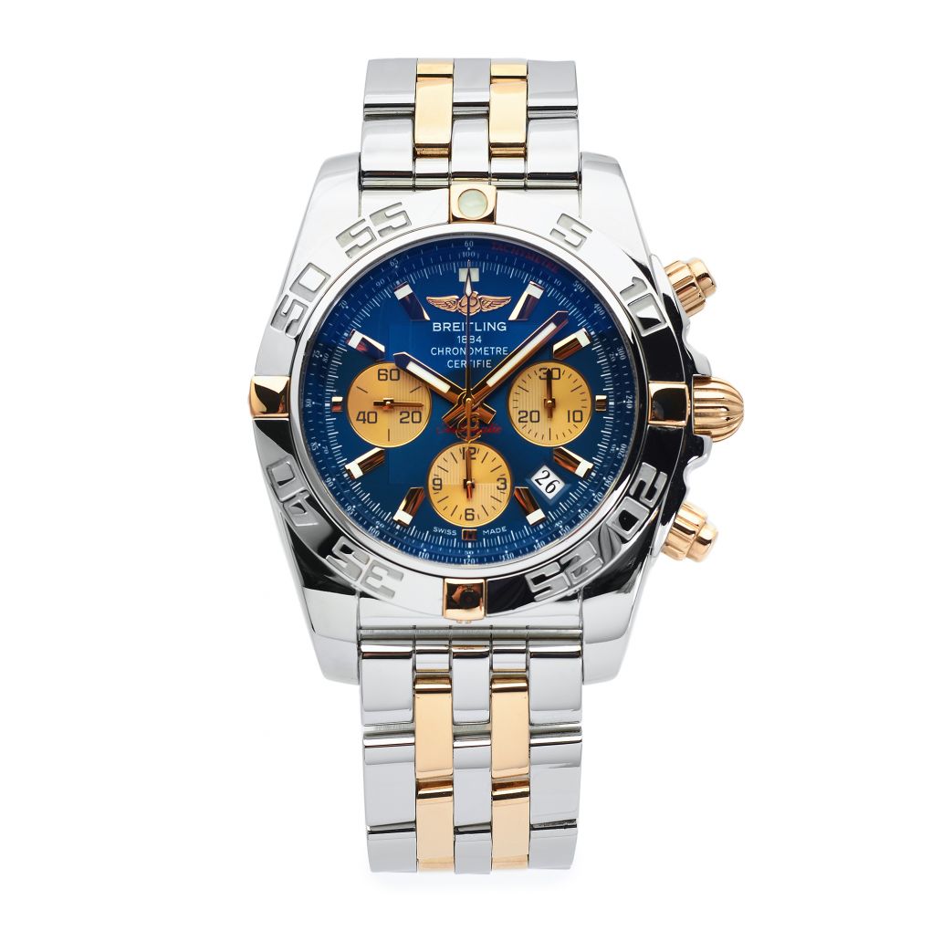 Breitling Rose Gold & Steel Chronomat 44 Blue Dial Watch