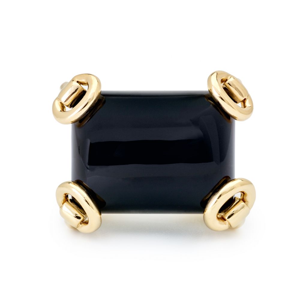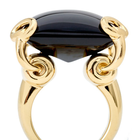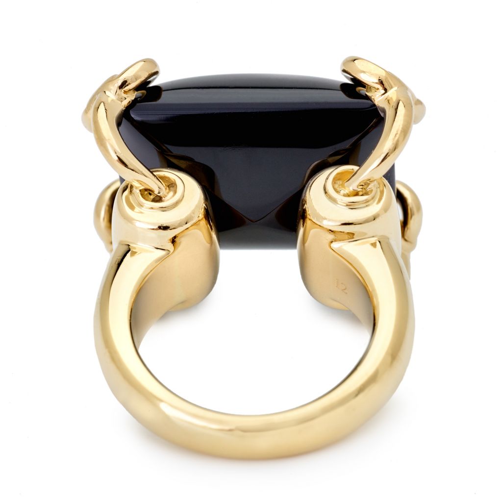 Gucci Yellow Gold Cabachon Onyx Stirrup Cocktail Ring