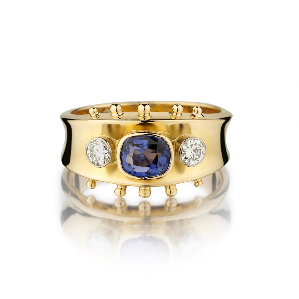• Ladies Custom Made 18kt Y/G Blue Sapphire and Diamond Ring