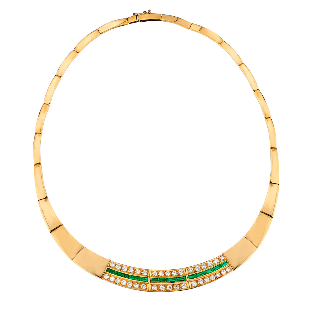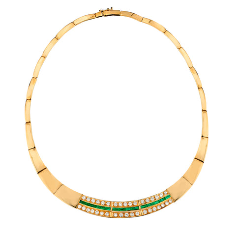 • Ladies 14kt Yellow Gold Green Emerald and Diamond. Choker Necklace
