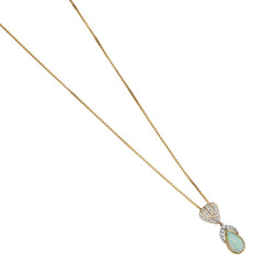 • Ladies 14kt Yellow Gold Opal and Diamond Drop Pendant Earings.