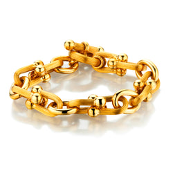 Ladies 18kt yellow and white gold bracelet with gucci inspired toggle closure. Gucci link inspired. Length: 7". Weight: 17.9 grams. Made in Italy