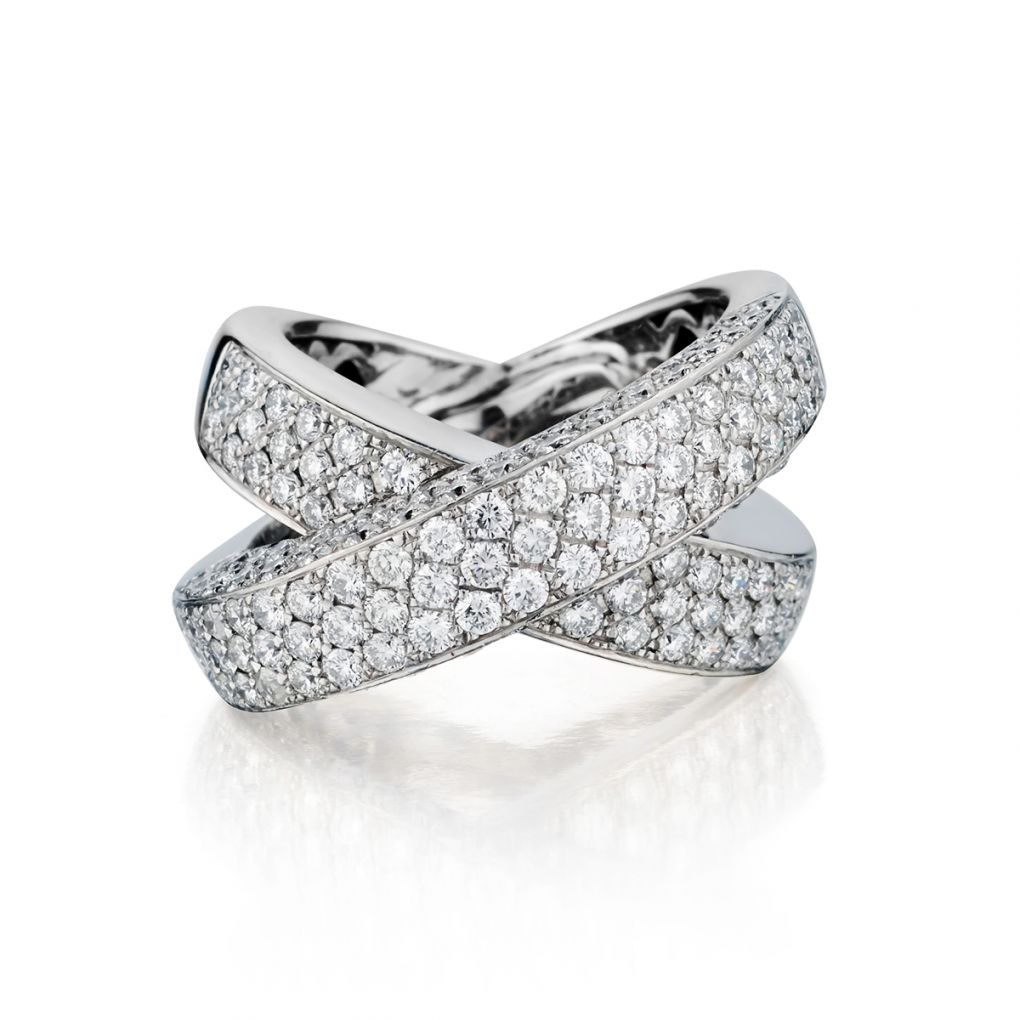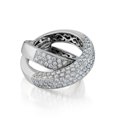 Ladies 18kt White Gold Cross Over Ring. 4.00 tcw.
