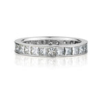 Ladies 18kt yellow gold diamond eternity band featuring 2.50 carat total weight of Princess cut diamonds of (VS) in clarity and (G-H) in colour. All the way around.Channel setting. Width:3.5mm. Finger size 6-1/4. This ring cannot be resized.