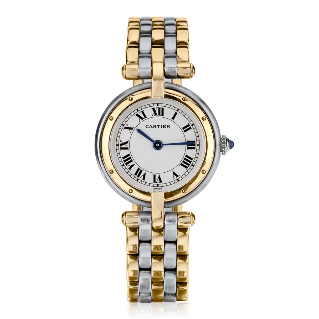 Ladies Cartier Panthere' Vendome wristwatch . Integrated steel and 3 row 18kt yellow gold wristband. 24mm case size. Quartz movement.Roman numerals.Waterproof:5ATM.Sapphire crystal.Purchased: 1990