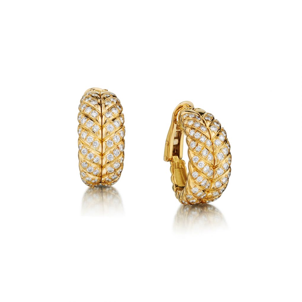 • Ladies Elegant 18kt Y/G French Diamond Huggies Earings. 3.80ct Tw