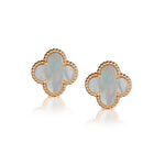Ladies authentic classic design Van Cleef & Arpels vintage alhambra studs in 18kt yellow gold. Mother of Pearl gemstone in clover motif. Reference # VCARA44100. Circa 2013