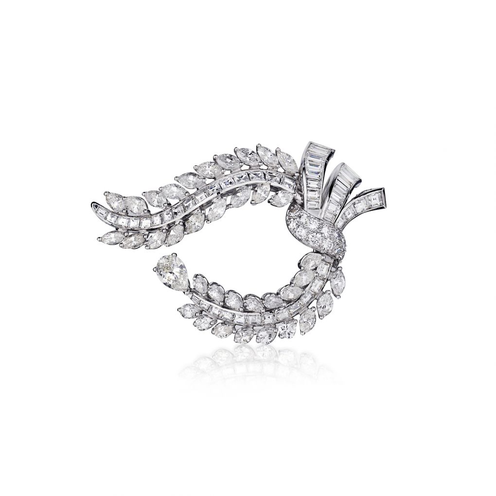 • Ladies Vintage Platinum Diamond Bow Brooch. 12.35ct Tw.