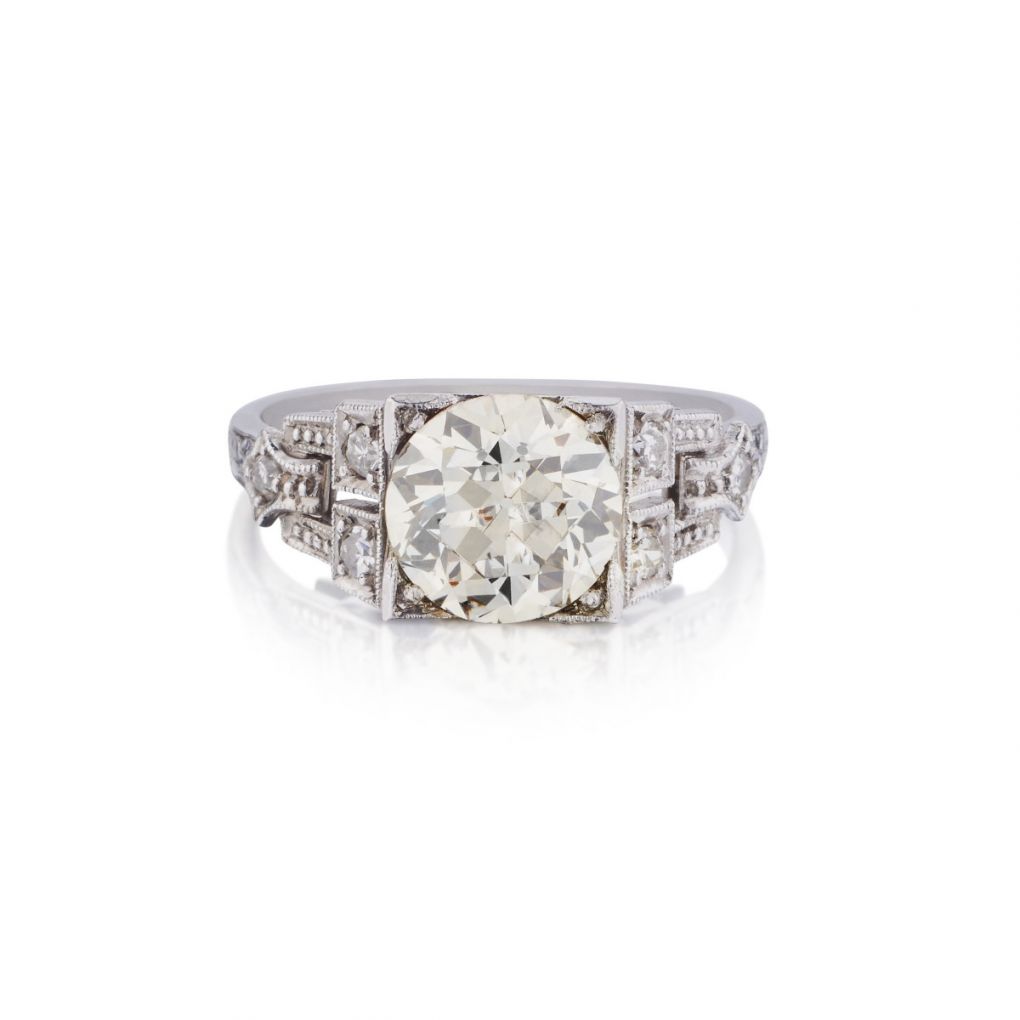 • Mid-Century 2.55 Old-European Cut Diamond Engagement White Gold Ring