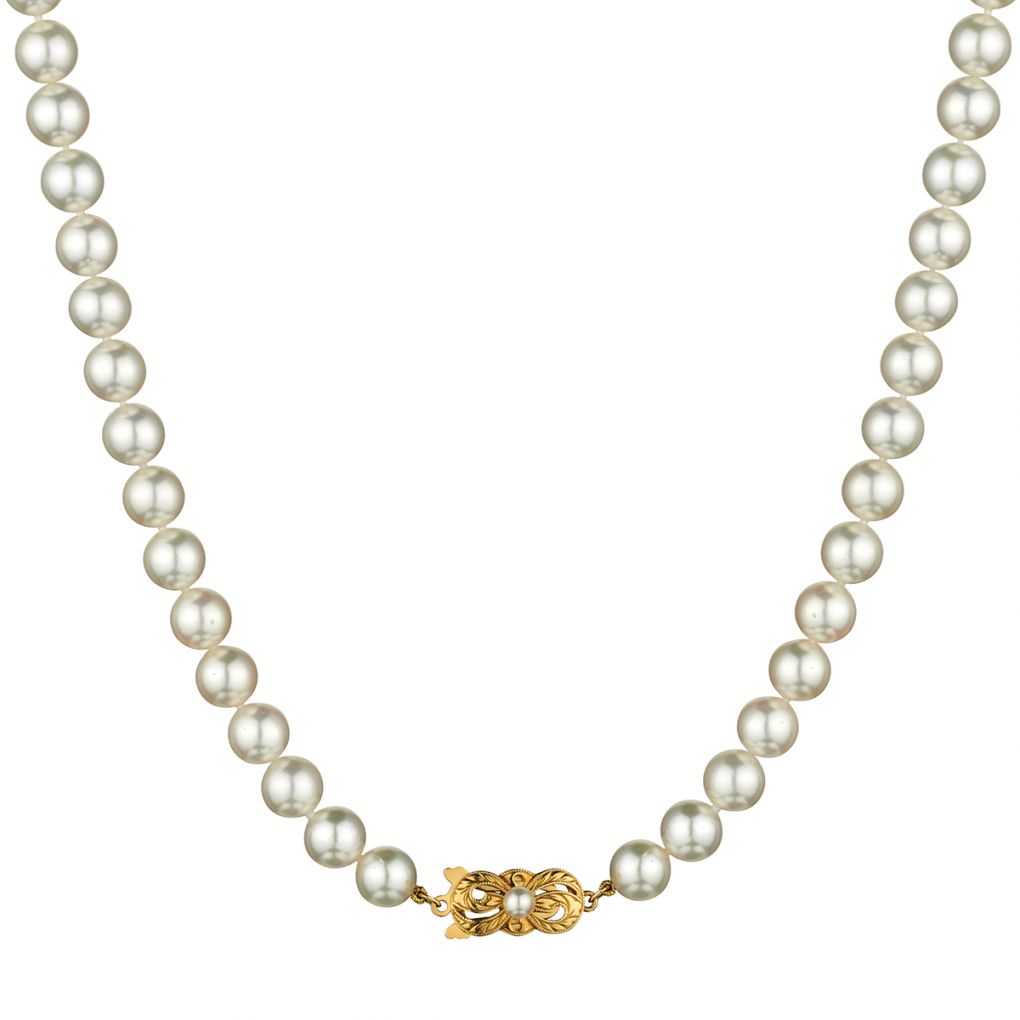 • Mikimoto 7.5 - 8mm Cultured Pearl Strand. 18" in length. 18kt Mikimoto Clasp