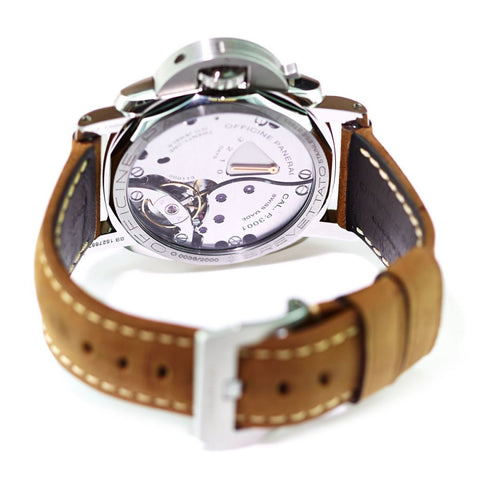 Gent's Panerai Luminor Marina 1950 3 Days Manual 47mm Wristwatch. Limited edition of 2000 pieces. A contemporary take on the watches of the 1950s Regia Maria (Royal Italian Navy). This watch features Panerai?s new in-house P. 3001 caliber which has a power reserve of three days that can be viewed through the case back.