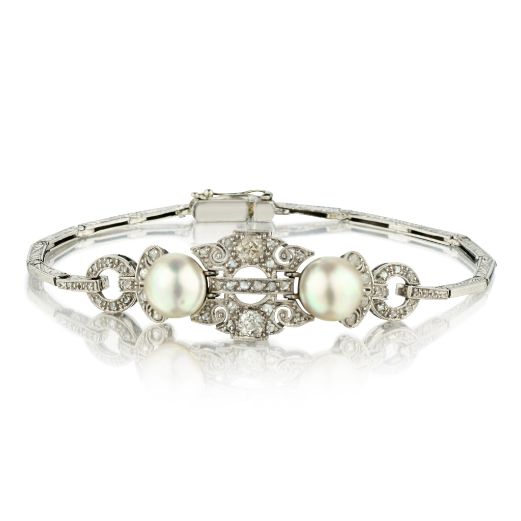 • Platinum Art Deco Pearl and Rose Cut Diamond Bracelet. Circa 1920