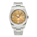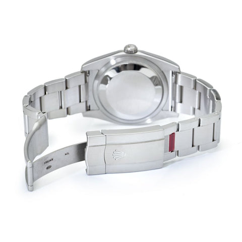 Gent's stainless steel Rolex Oyster Perpetual wristwatch featuring an integrated stainless steel Oyster bracelet. Fixed stainless steel bezel. White grape dial; luminous hands and index hour markers; minute markers around outer rim. 36mm case diameter. Automatic movement; caliber 3130. Solid case-back. Sapphire crystal. Water resistant at 100 meters/330 feet. Originally purchased in August 2014. Reference #: 116000.