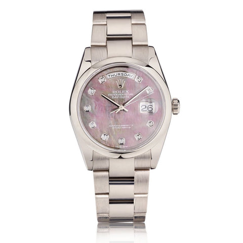 Rolex Oyster Perpetual Day-Date White Gold Tahitian MOP Diamond Watch