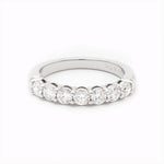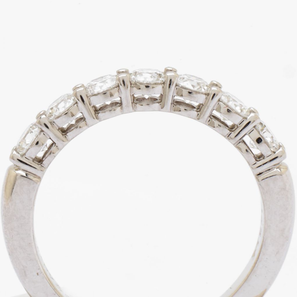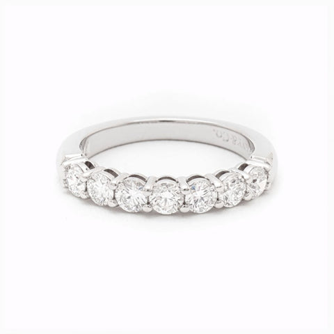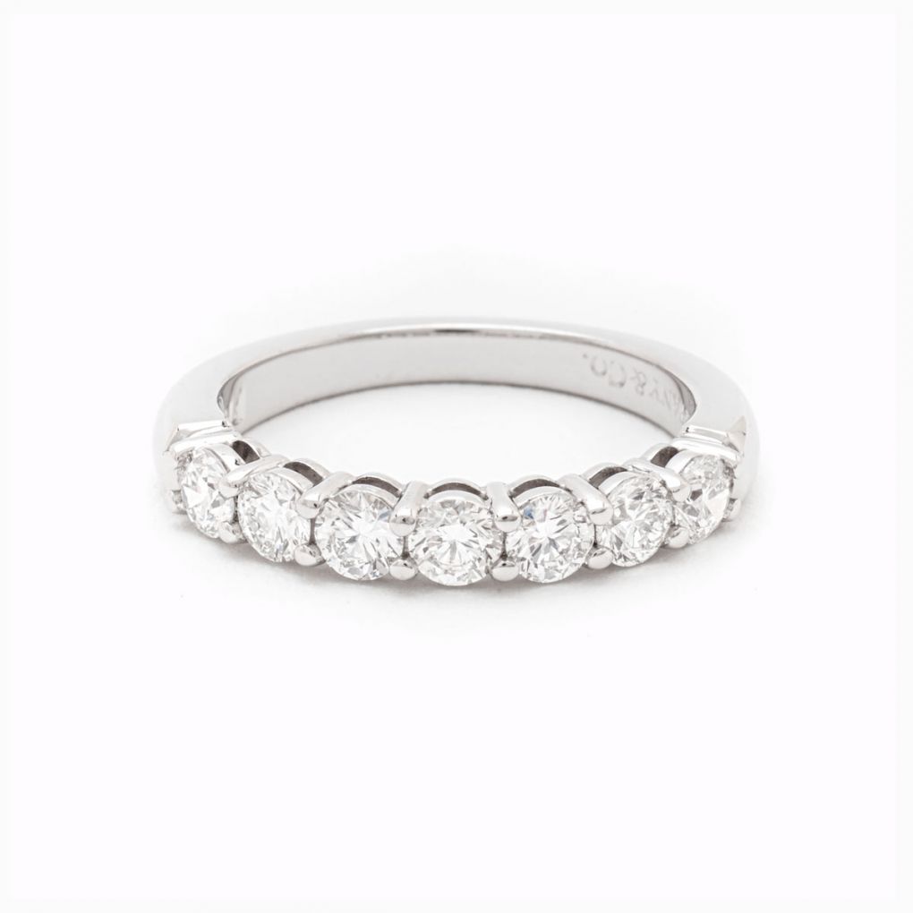 Ladies Tiffany & Co. platinum and diamond band featuring (7) round Brilliant cut diamonds weighing 0.56cts total weight of (VS) in clarity and (G) in color. This ring is resizable.