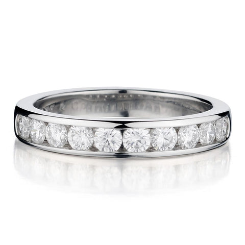 Ladies Tiffany & Co diamond eternity ring featuring 10 x 0.90 total carat weight of Brilliant cut diamonds. Diamonds are channel set half way around.Current size 9. This ring can be resized.4mm width.