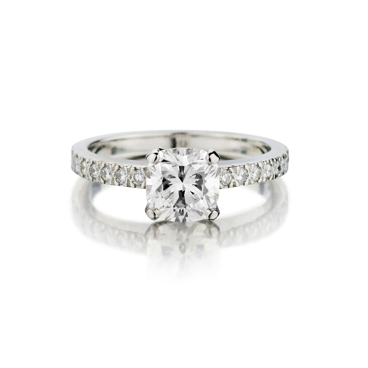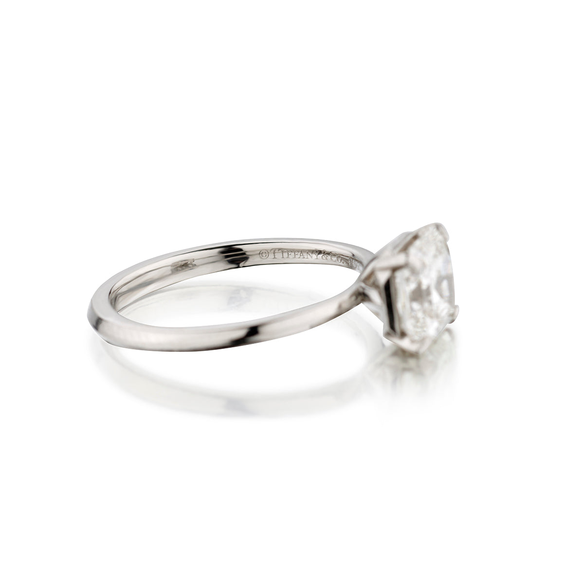 • Tiffany & Co. Platinum Square Cut Diamond Solitaire Ring. 1.27ct weight