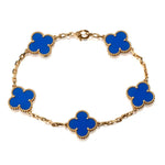 Van Cleef & Arpels vintage Alhambra 5 motif Blue Agate bracelet. 18kt yellow gold bracelet Hallmark clasp. 7.48 inch length. Reference VCAR1034900. Circa 2023.
