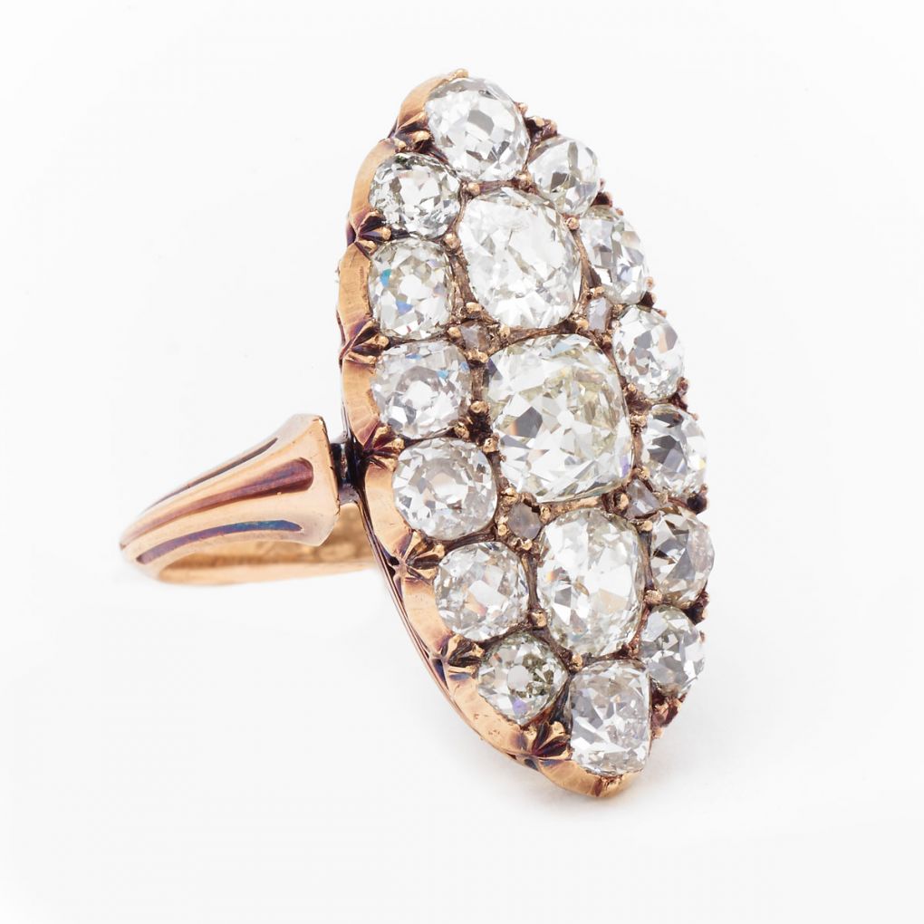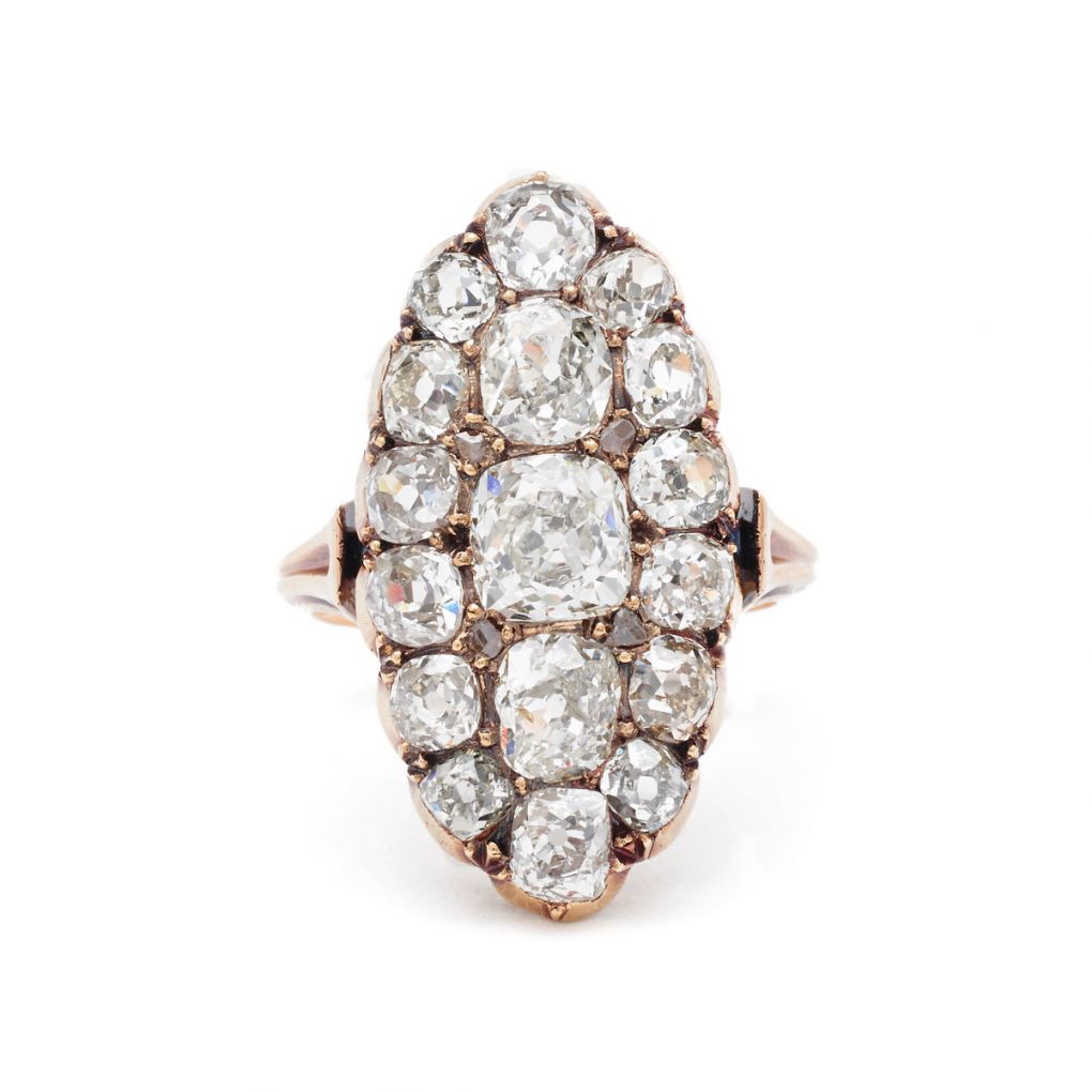 • Victorian Old-Mine Cut Diamond Cluster Rose Gold Ring