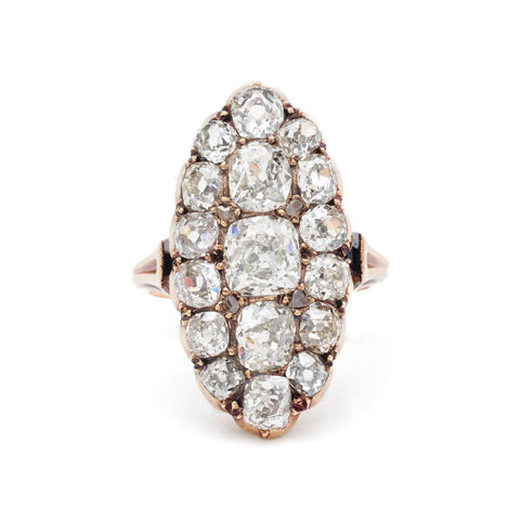 Victorian Old-Mine Cut Diamond Cluster Rose Gold Ring