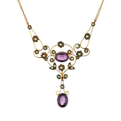 • Victorian Peridot and Seed Pearl Pendant. 14kt Yellow Gold