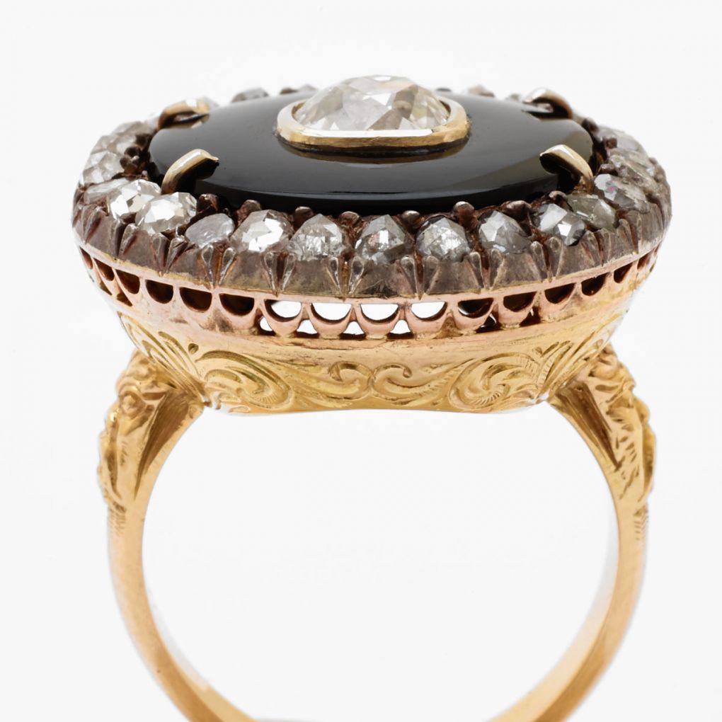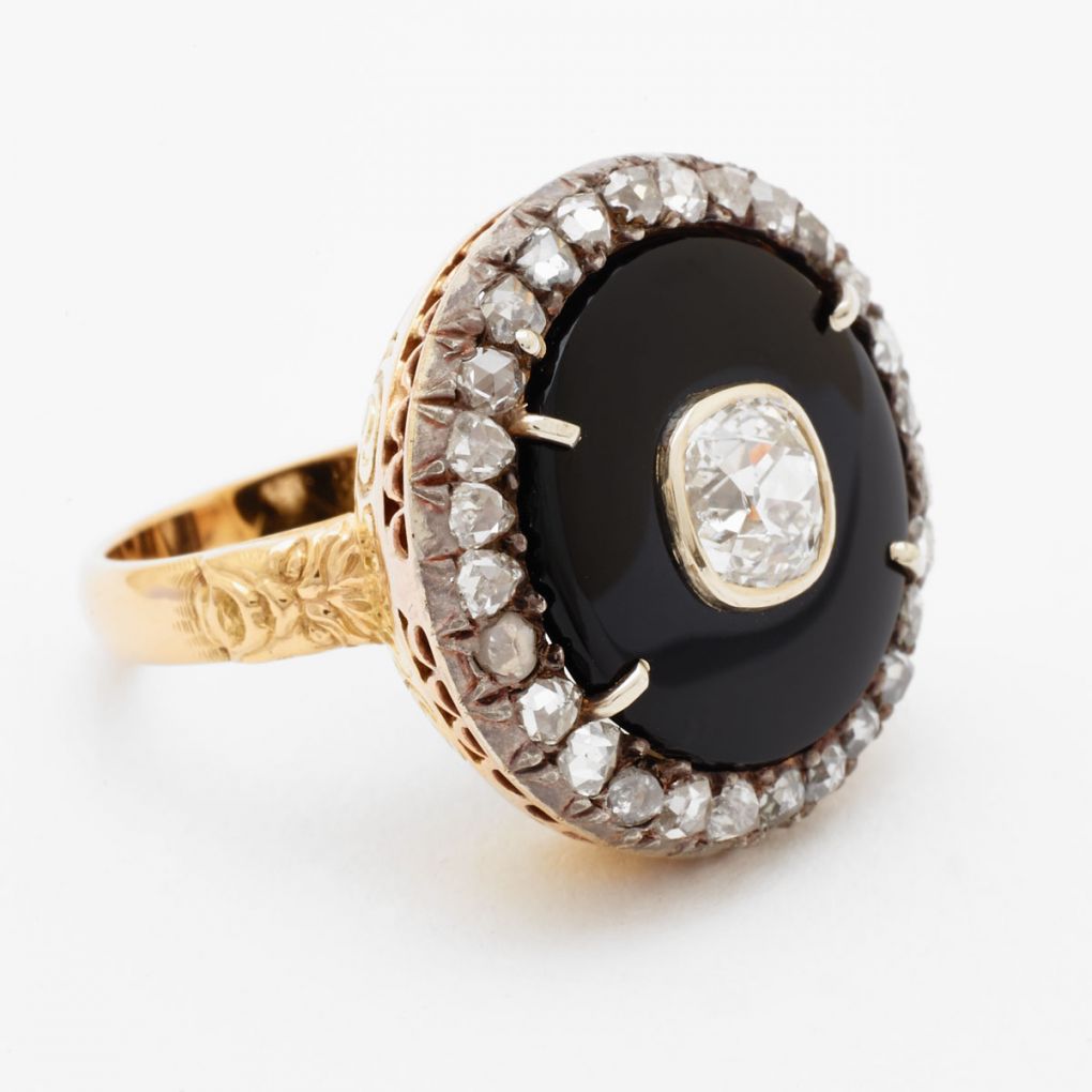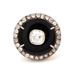 • Vintage 1.02 Carat Old-Mine Cut Diamond, Onyx & Gold Ring