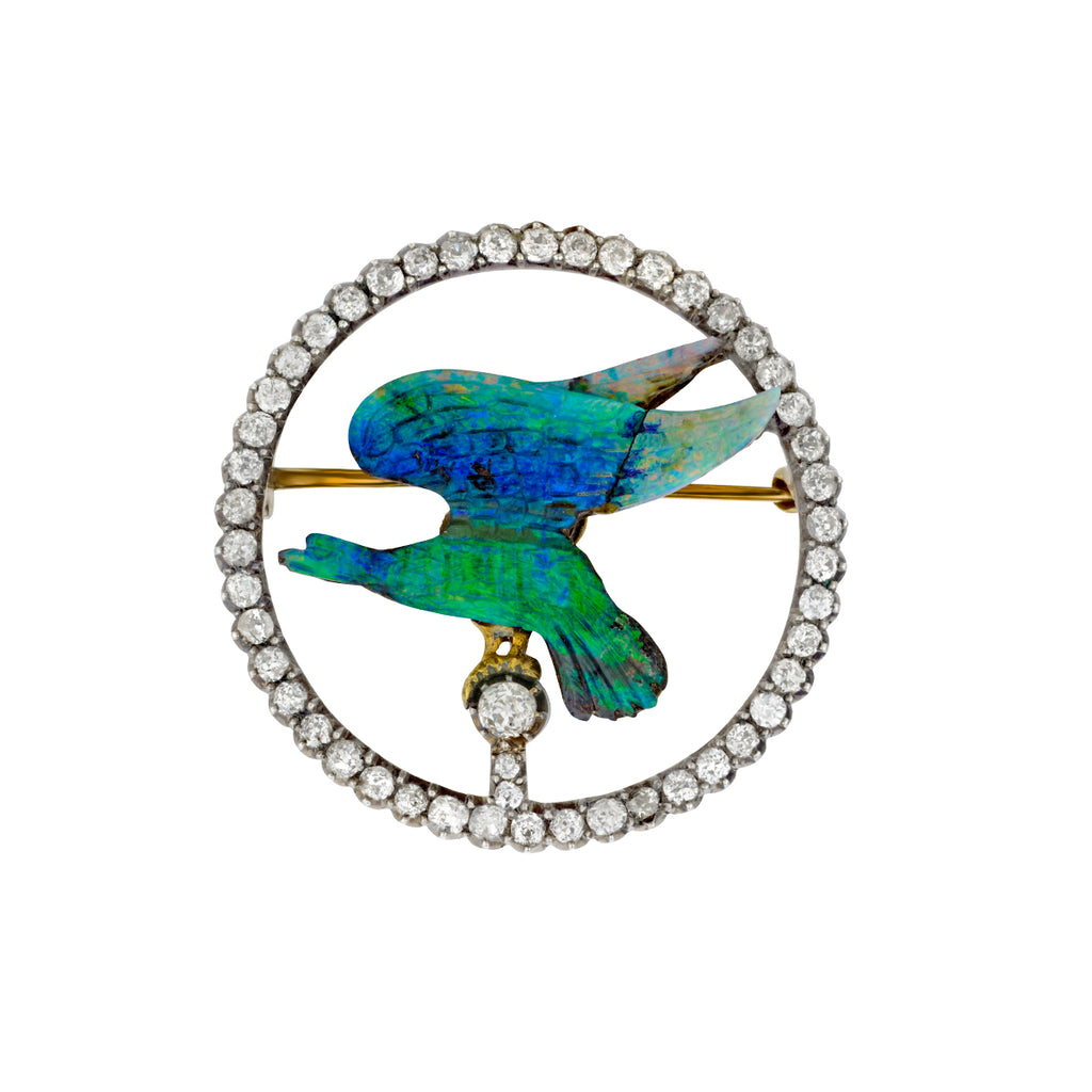Overall Good condition. Tail of bird has slight crack that has been repaired with glue. Consistant with age and fragility of opal stone.