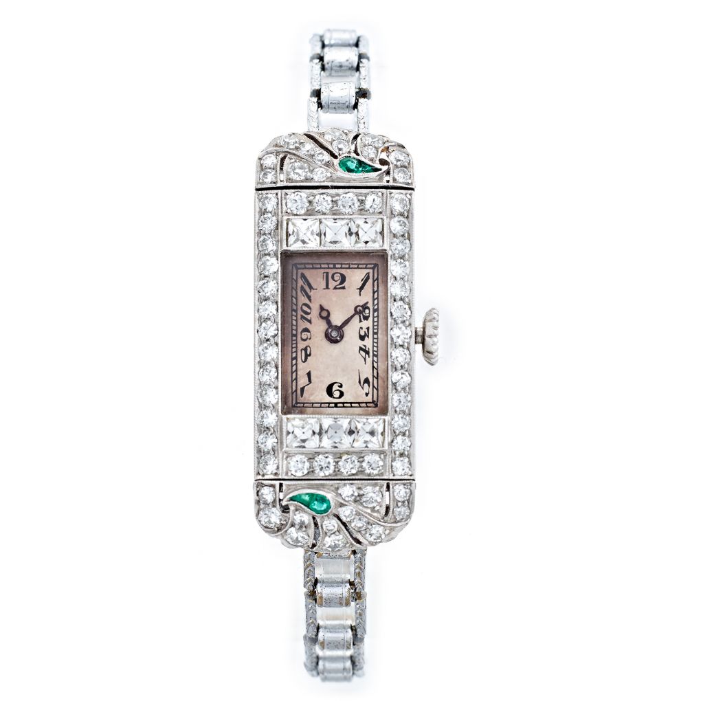 • Art Deco Diamond & Green Emerald Bracelet Watch