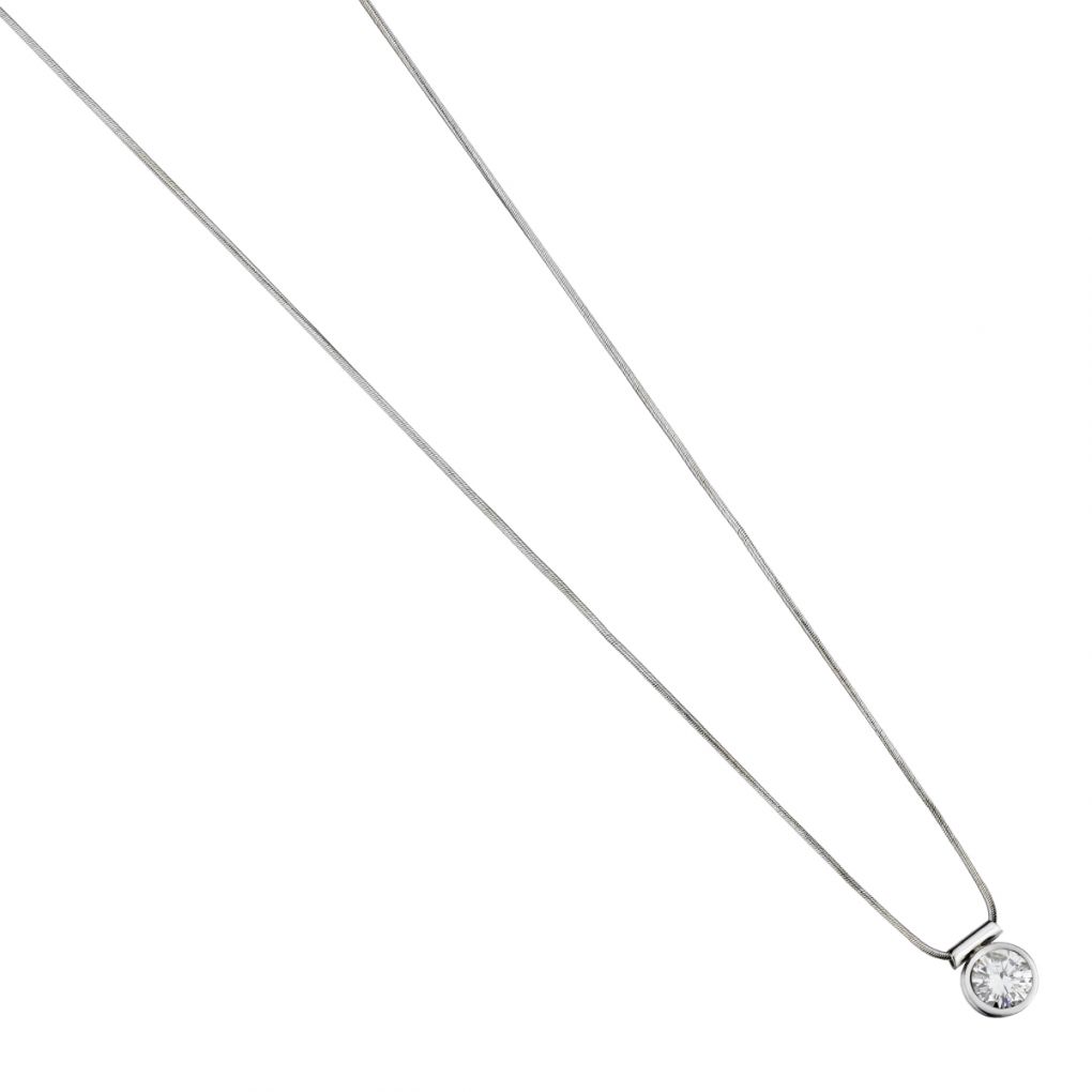 Ladies 14kt white gold solitaire diamond pendant featuring a 0.75 carat Round Brilliant cut diamond of (I-1) in clarity and (H) in color. Featured on a 16" long chain. Bar to prevent flipping.
