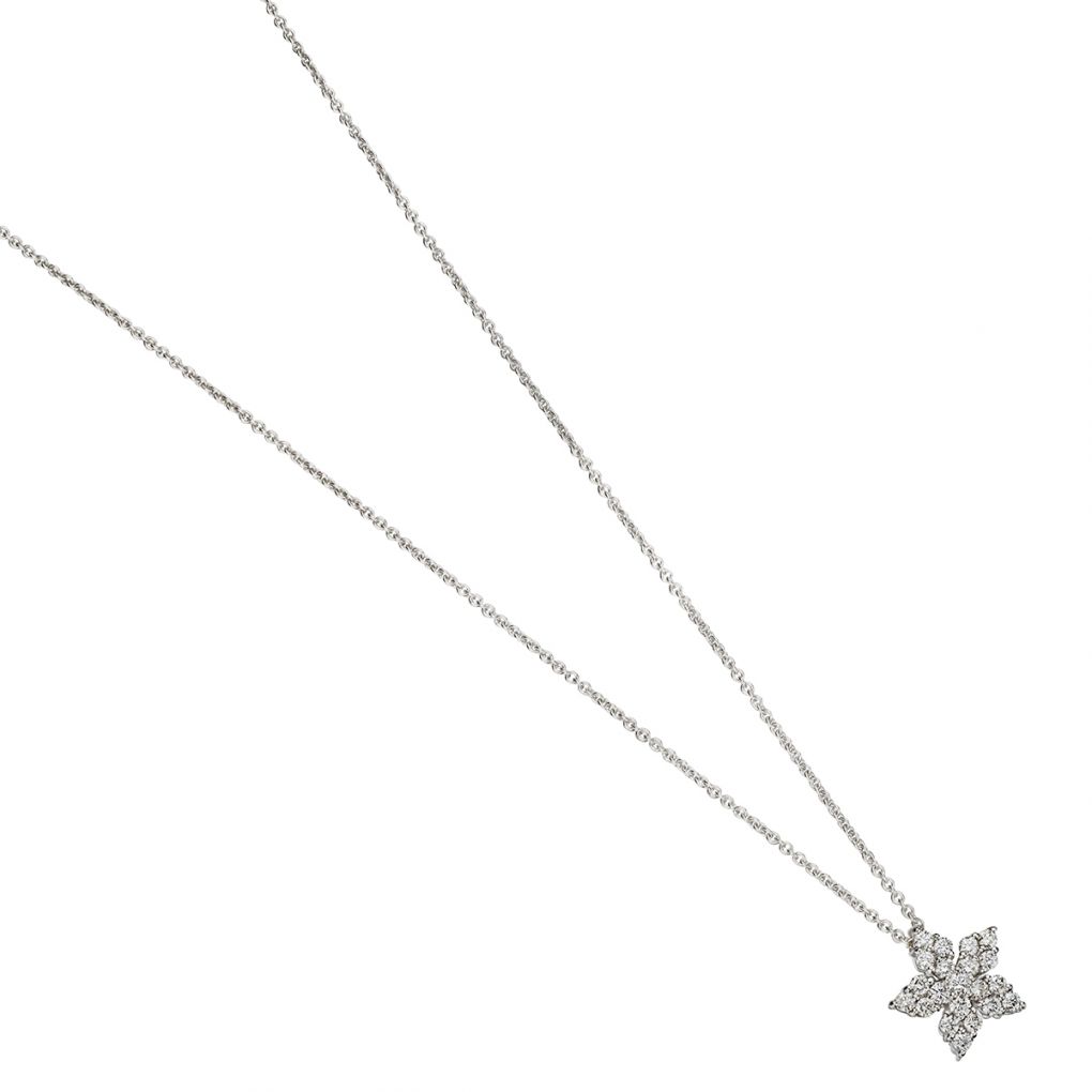 Ladies beautiful and sparkly 18kt white gold diamond snowflake pendant featuring 0.65 carat total weight of Round Brilliant cut diamonds of (VS) in clarity and (G) in color. Pendant is 1/2". Featuring an 18kt white gold chain that can be worn at 16" or 17 1/2".