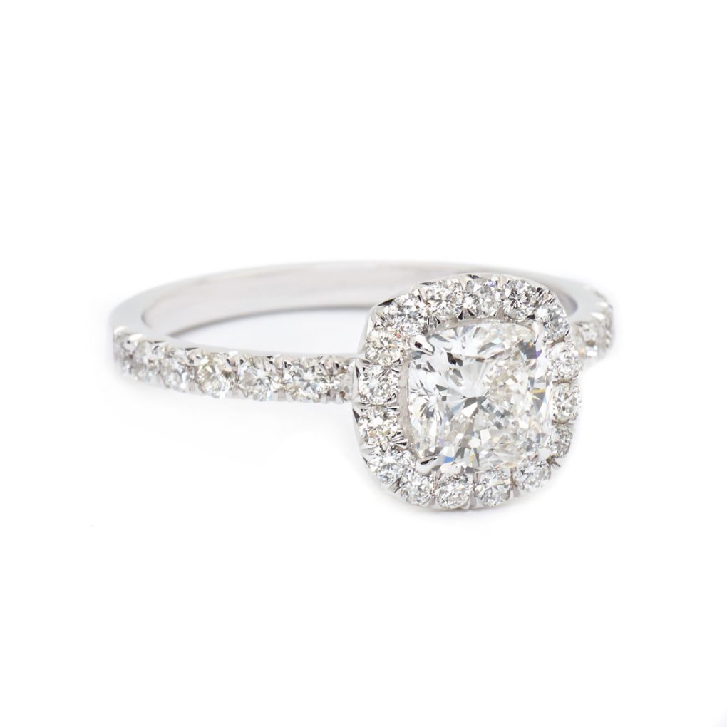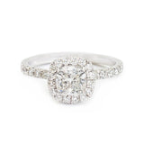 0.90 Carat Cushion-Cut Diamond Halo-Set White Gold Ring