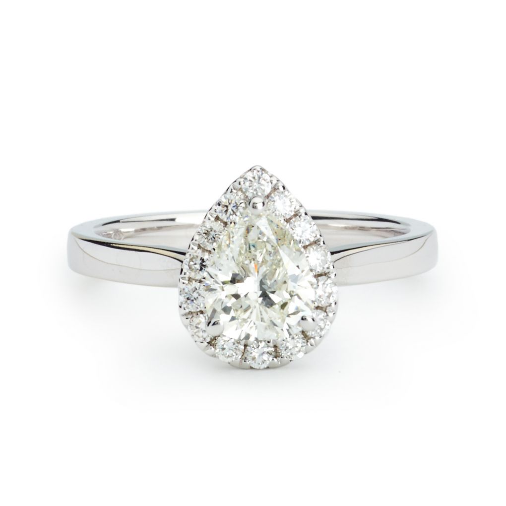 • 0.90 Carat Pear-Shaped Diamond Halo-Set WG Ring