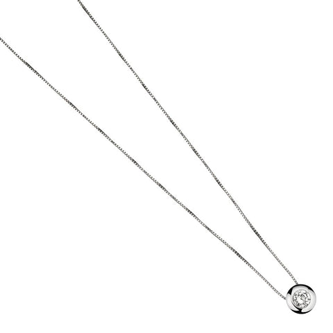 Ladies 14kt white gold diamond solitaire pendant featuring a 1.01 carat Round Brilliant cut diamond of (I-1) in clarity and (H) in color.