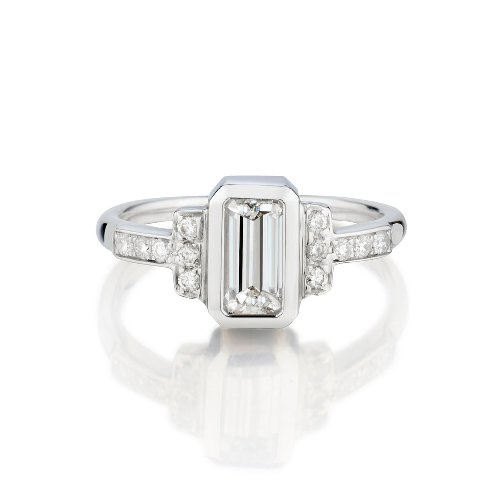 1.09 Carat Emerald Cut Diamond 18KT White Gold Ring .