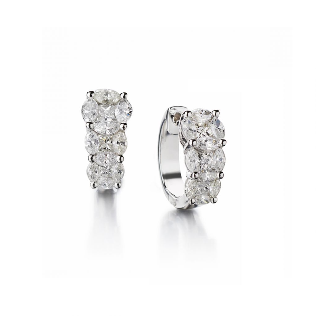 1.25 Carat Total Weight Marquise Cut And Square Cut Diamond Huggies