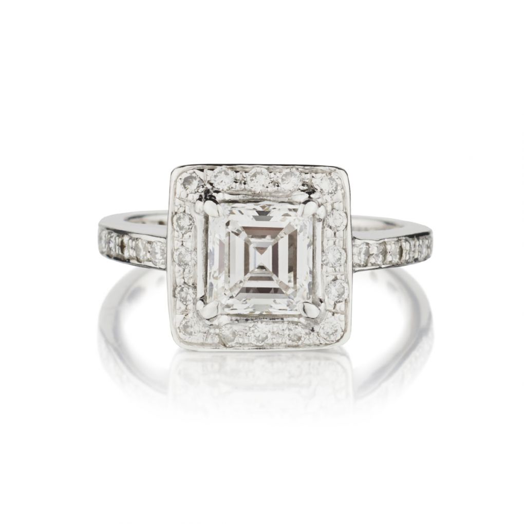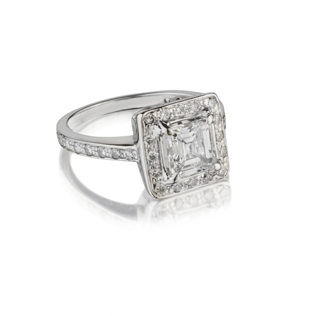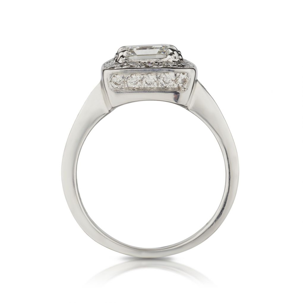 1.30 Carat Emerald Cut Diamond Halo-Set White Gold Ring
