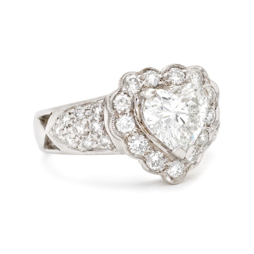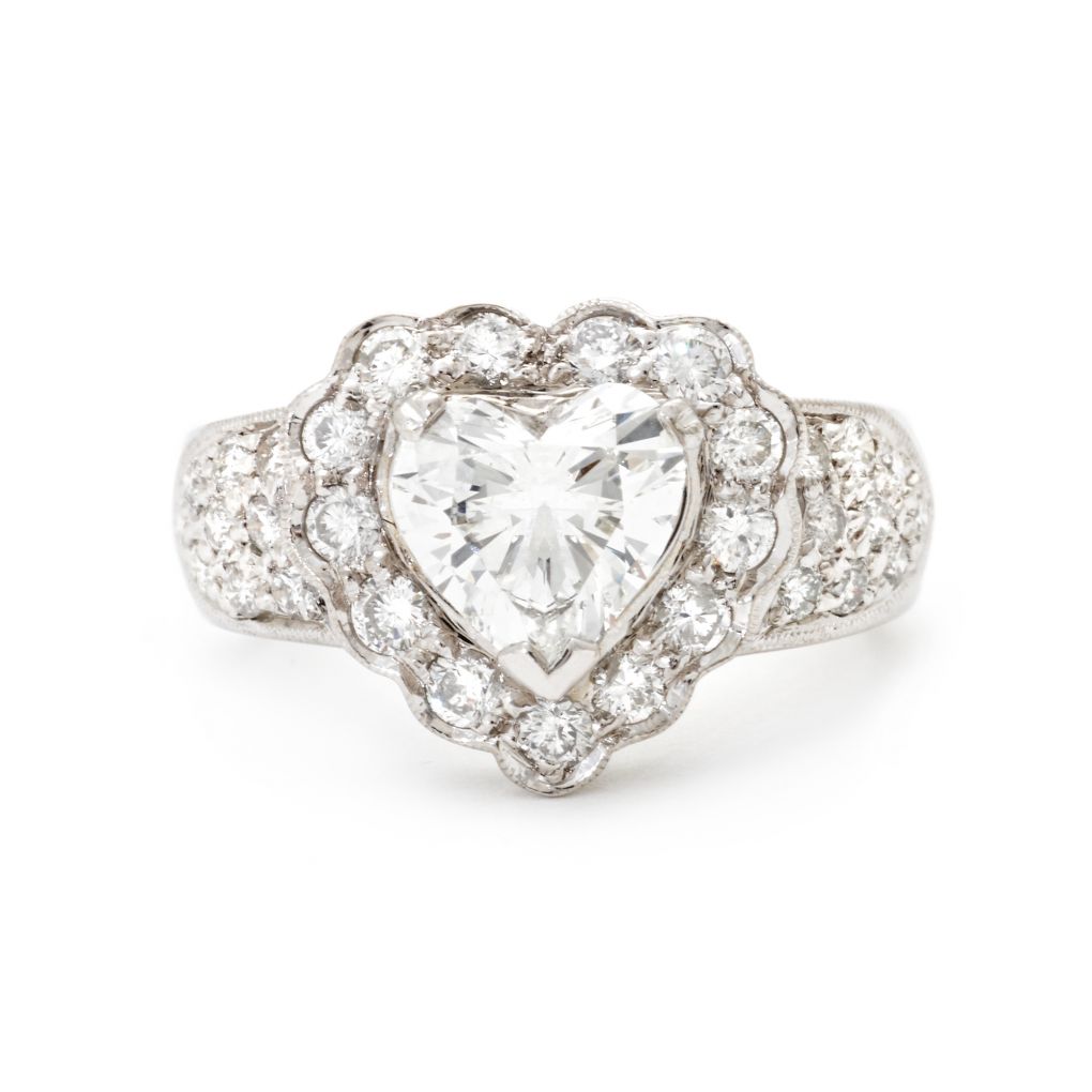 • 1.30 Carat Heart-Shaped Diamond 18KT White Gold Halo-Set Wide Ring