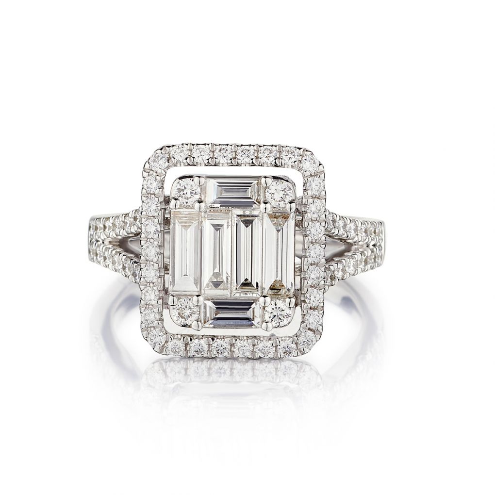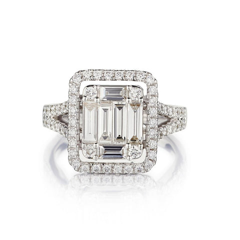 • 1.50 Carat Total Weight Baguette And Round Briliant Cut Illusion Ring